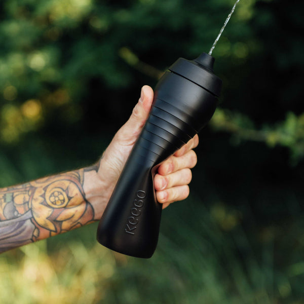 Das Bundle kombiniert zwei innovative Titan-Sportflaschen mit einem Paar hochwertigen Socken mit motiverender Botschaft.